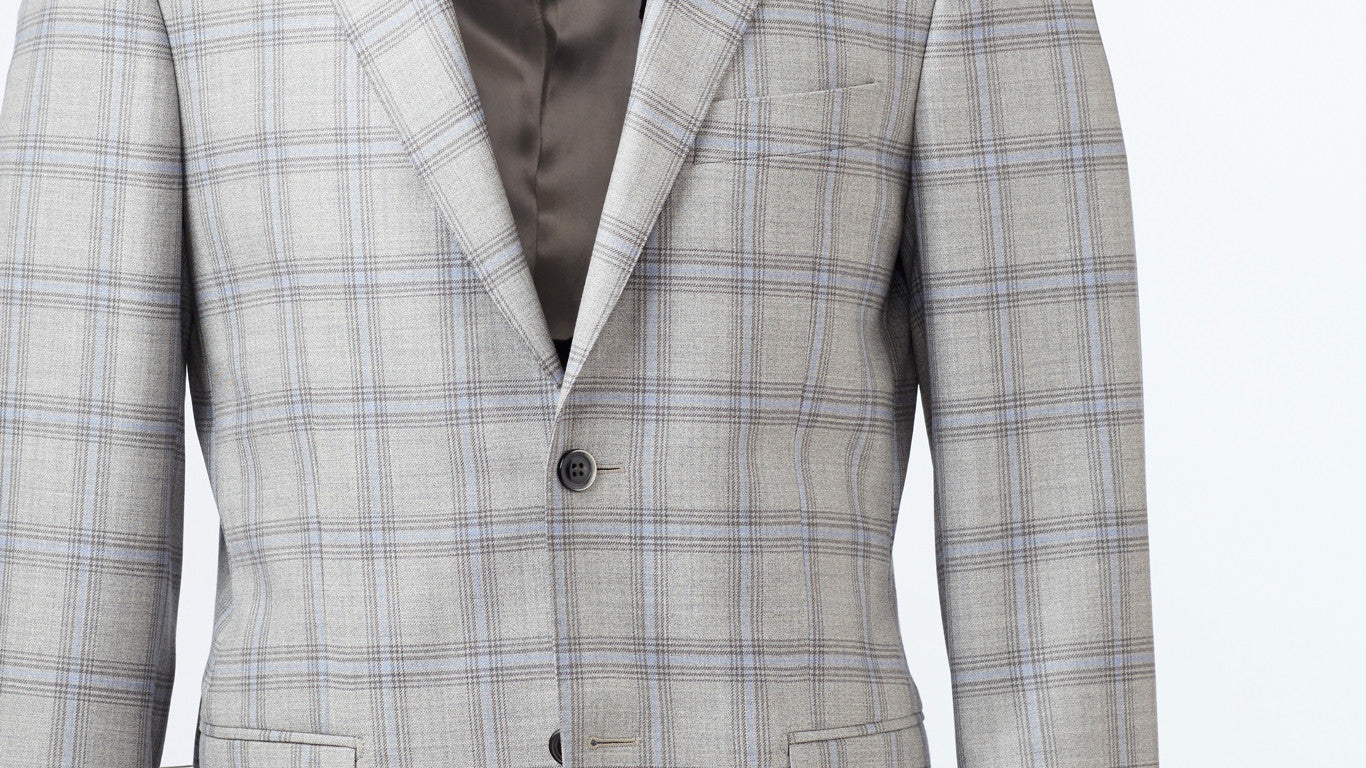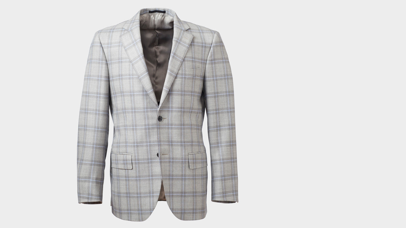 This grey heather sport coat with dark grey and light blue check is a modern take on a classic pattern. The Oslo Sport Coat has just enough zest to bring uniqueness to your sport coat collection without being too loud. Lined with a two-button closure, flap side pockets, one welt chest pocket and two back vents. Constructed from Italian-woven, super 120s wool in Mantua, Italy